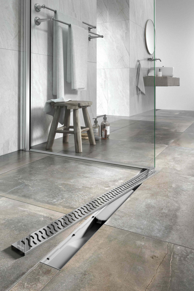 Водоотводящие желоба это атрибут для современного интерьера ванных комнат, сауны и зоны отдыха. Их преимуществом является простота установки, обслуживания и эксплуатация базбарьерной зоны. Монтаж можно производить как на открытых участках боксов и кабин, так и в близи стен. Нижняя часть изготовлена из ПП и ПС с возможной нагрузкой до 300 кг. Минимальная высота установки составляет 65 мм, желоб с регулировкой высоты.