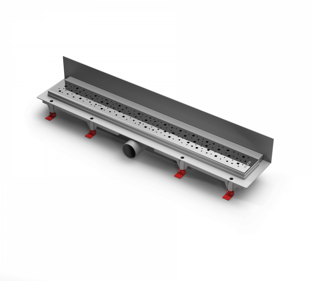 Водоотводящие желоба это атрибут для современного интерьера ванных комнат, сауны и зоны отдыха. Их преимуществом является простота установки, обслуживания и эксплуатация базбарьерной зоны. Монтаж производят в близи стен. Нижняя часть изготовлена из ПП и ПС, решётка изготовлена из нержавеющей стали DIN 1.4301 K3 с возможной нагрузкой до 300 кг. Минимальная высота установки составляет 65 мм, желоб с регулировкой высоты.