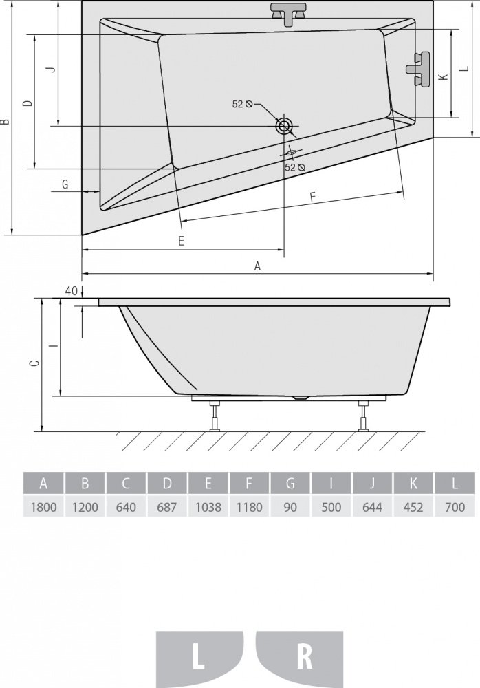 Акриловая ванна ALPEN Triangl 180 R
