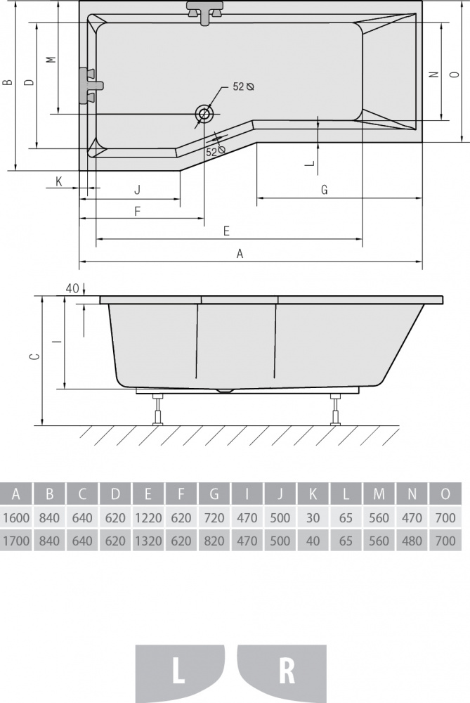 Акриловая ванна ALPEN Versys 170 L