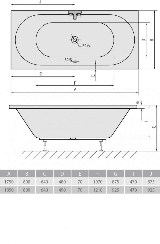 Акриловая ванна ALPEN Viva B 185