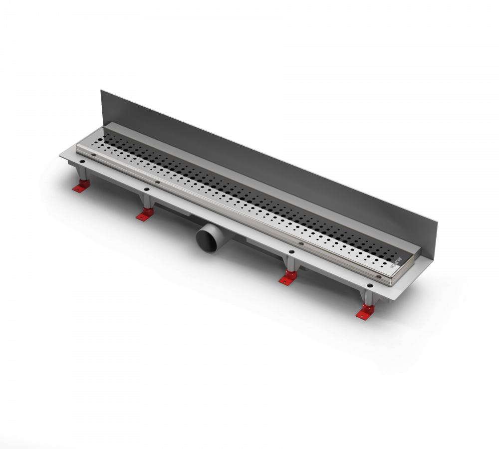 Водоотводящие желоба это атрибут для современного интерьера ванных комнат, сауны и зоны отдыха. Их преимуществом является простота установки, обслуживания и эксплуатация базбарьерной зоны. Монтаж можно производить как на открытых участках боксов и кабин, так и в близи стен. Нижняя часть изготовлена из ПП и ПС, решётка изготовлена из нержавеющей стали DIN 1.4301 K3 с возможной нагрузкой до 300 кг. Минимальная высота установки составляет 65 мм, желоб с регулировкой высоты.