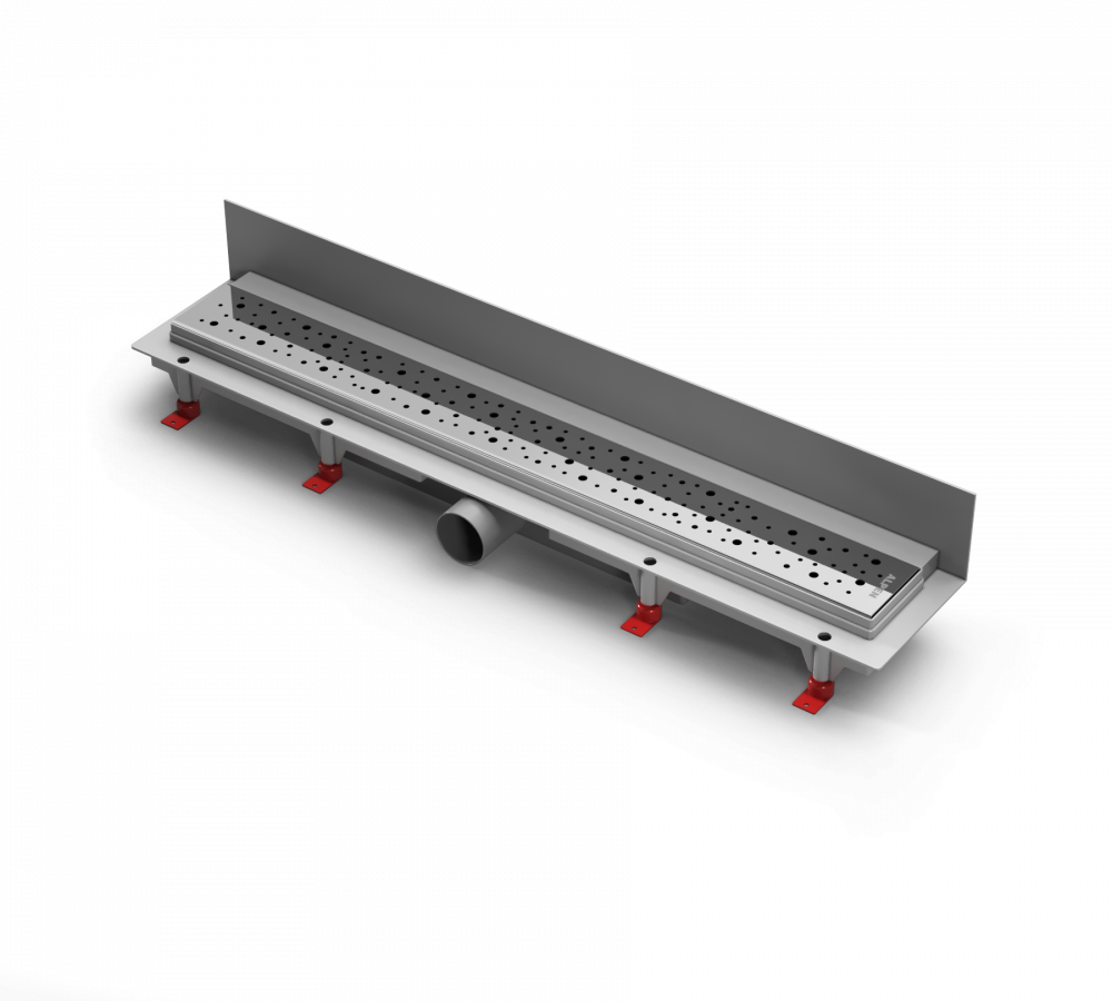 Водоотводящие желоба это атрибут для современного интерьера ванных комнат, сауны и зоны отдыха. Их преимуществом является простота установки, обслуживания и эксплуатация базбарьерной зоны. Монтаж производят в близи стен. Нижняя часть изготовлена из ПП и ПС, решётка изготовлена из нержавеющей стали DIN 1.4301 K3 с возможной нагрузкой до 300 кг. Минимальная высота установки составляет 65 мм, желоб с регулировкой высоты.